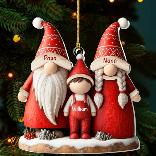 Gnome Grandparents And Grandkid - Personalized 1-Layer Acrylic Ornament