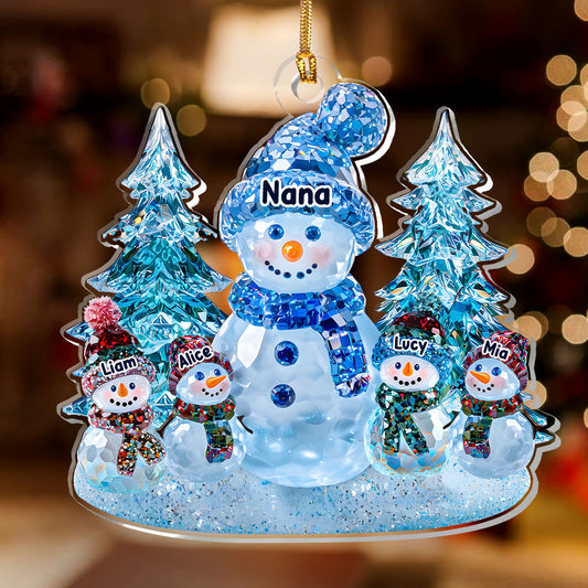Crystal Snowman Grandma And Grandkids - Personalized 1-Layer Acrylic Ornament