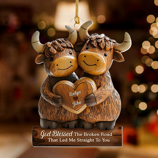 Cute Highland Cow Couple - Personalized 1-Layer Acrylic Ornament