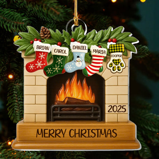 Stockings on Fireplace - Personalized 1-Layer Acrylic Ornament