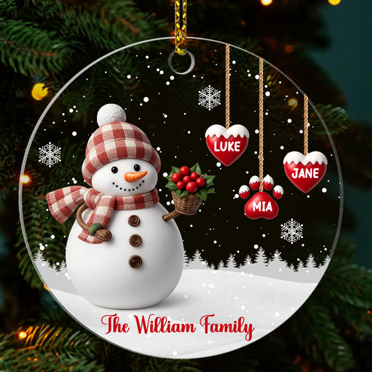 Family Member Names With Snowman - Personalized 1-Layer Acrylic Ornament