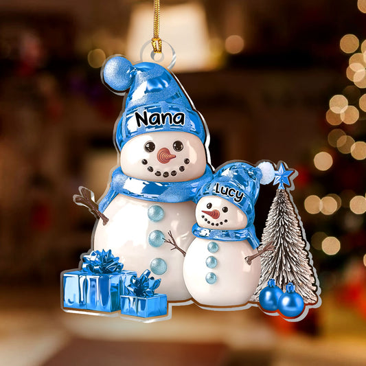 Golden Snowman Grandma And Grandchild - Personalized 1-Layer Acrylic Ornament