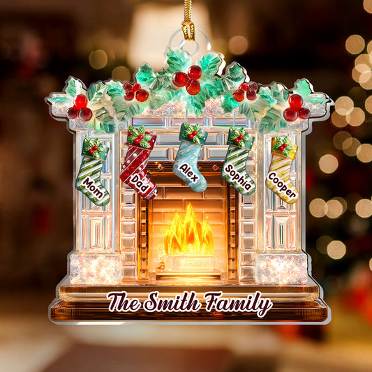 Christmas Stockings Family On Fireplace - Personalized 1-Layer Acrylic Ornament