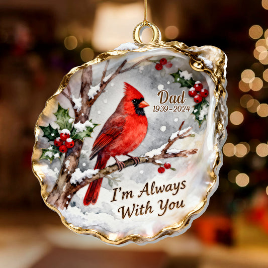 Cardinal & Red Berries Oyster Shell - Personalized 1-Layer Acrylic Ornament