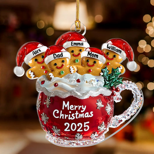 Crystal Gingerbread Family - Personalized 1-Layer Acrylic Ornament