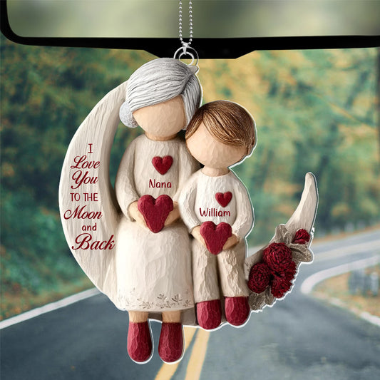 Grandma And Grandchild Moon Love - Personalized Car Acrylic Hanging Ornament