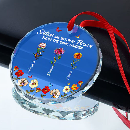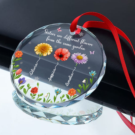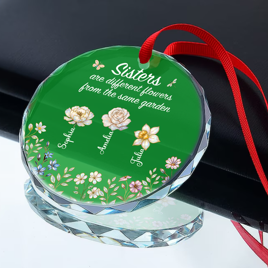 Sisters Are Different Flowers From The Same Garden - Personalized Round Shaped Glass Ornament
