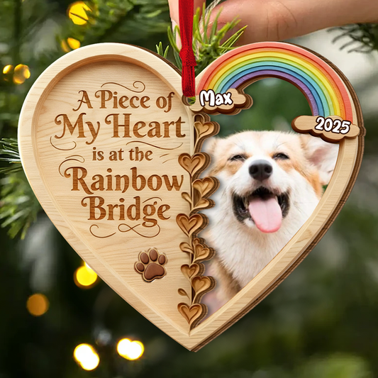 Custom Photo A Piece Of My Heart Is At The Rainbow Bridge - Personalized 2-Layered Wooden Ornament