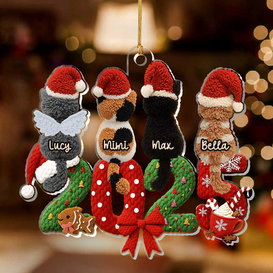 2025 Cat Lovers Latch Hook Yarn Faux - Personalized 1-Layer Acrylic Ornament