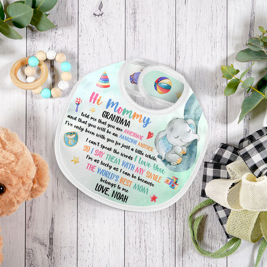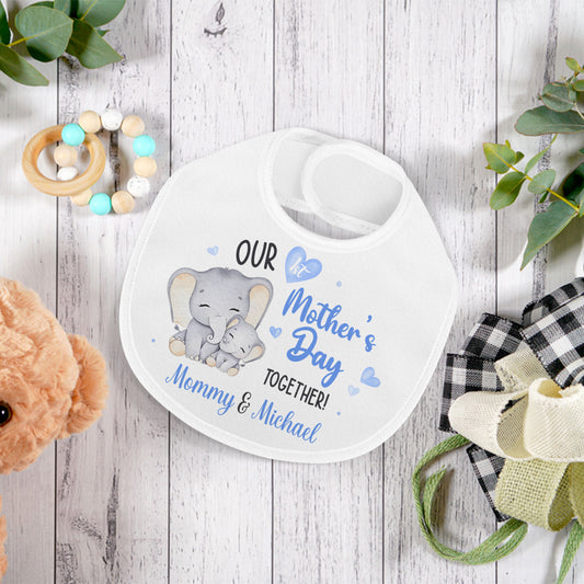 Cute Elephant Our 1st Mother's Day Together - Personalized Baby Bib