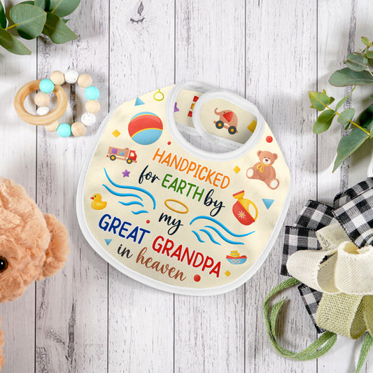 Handpicked For Earth By My Great Grandpa - Personalized Baby Bib