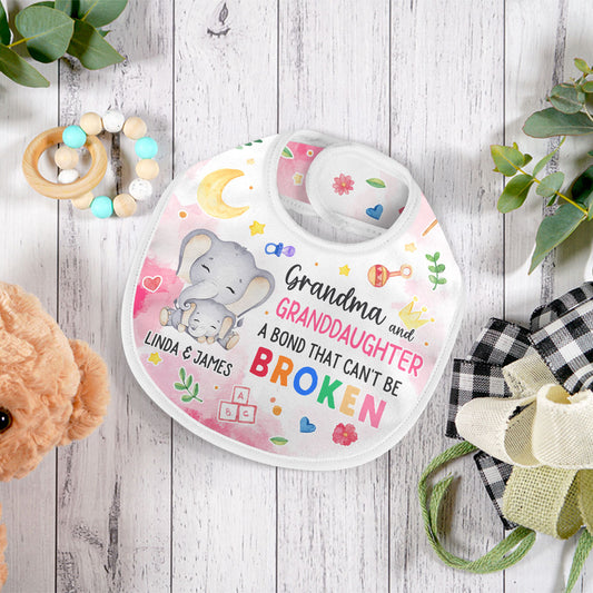 Grandma And Grandkid A Bond That Can't Be Broken - Personalized Baby Bib