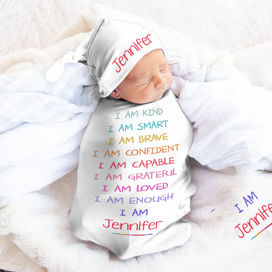 I'm Kind Smart Loved - Personalized Swaddle And Knot Hat Set