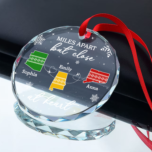 Miles Apart But Close At Heart - Personalized Round Shaped Glass Ornament