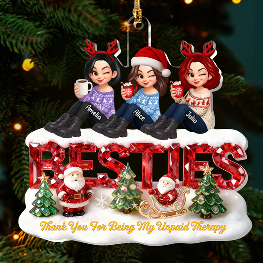 Besties Sisters Thank You For Being My Unpaid Therapy - Personalized 1-Layer Acrylic Ornament