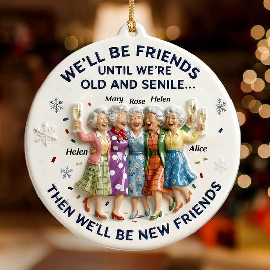 We Will Be Friends Until We Are Old And Senile - Personalized Round Shaped Glass Ornament