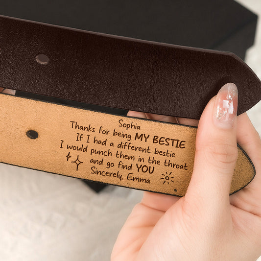 If I Had A Different Bestie I Would Punch Them In The Throat - Personalized Woman Leather Belt
