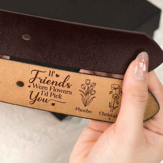 If Friends Were Flowers I'd Pick You - Personalized Woman Leather Belt