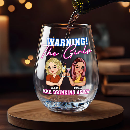 Warning! The Girls Are Drinking Again - Personalized Stemless Wine Glass