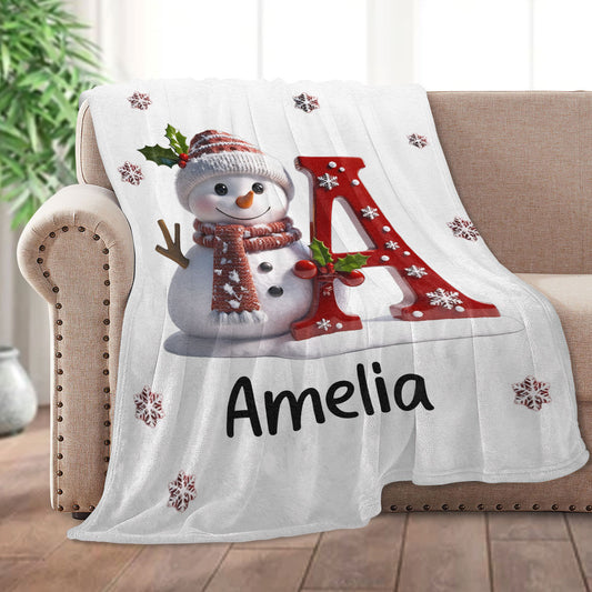 Snowman Merry Christmas - Personalized Fleece Blanket