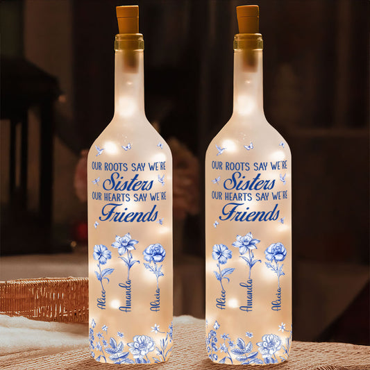 Our Roots Say We're Sisters Our Hearts Say We’re Friends - Personalized Bottle Lamp