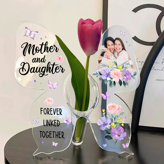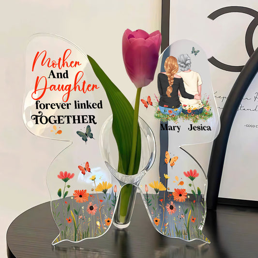 Mother And Daughter Forever Linked Together - Personalized Butterfly Acrylic Vase