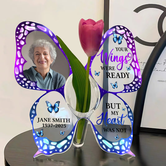 Custom Photo Your Wings Were Ready - Personalized Butterfly Acrylic Vase