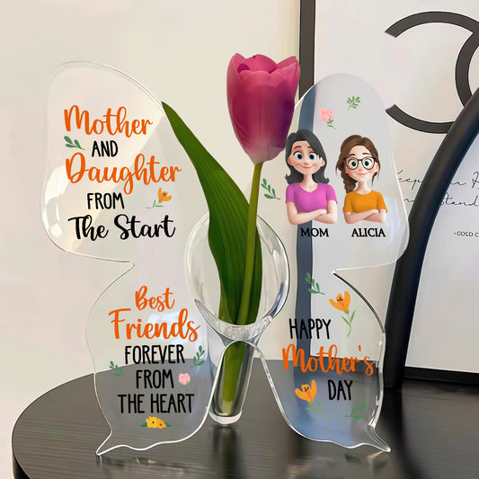 Mother And Daughter From The Start Best Friends Forever - Personalized Butterfly Acrylic Vase