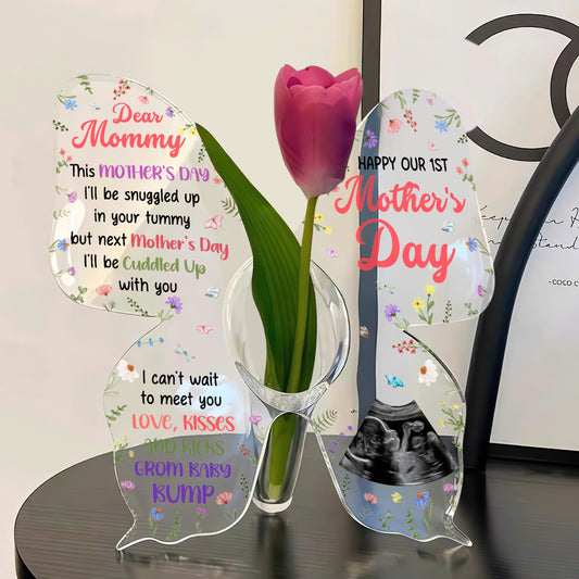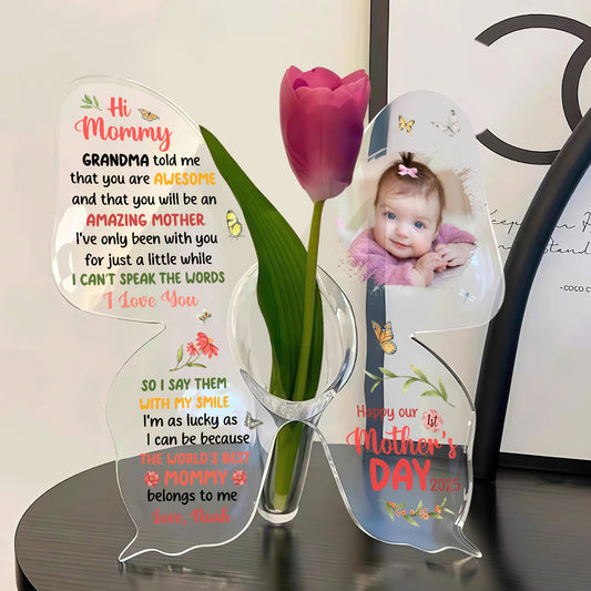 The Best Mommy Belongs To Me First Mom New Mom Gift - Personalized Butterfly Acrylic Vase