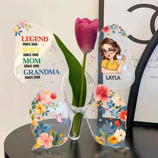 Legend Wife Mom Grandma - Personalized Butterfly Acrylic Vase