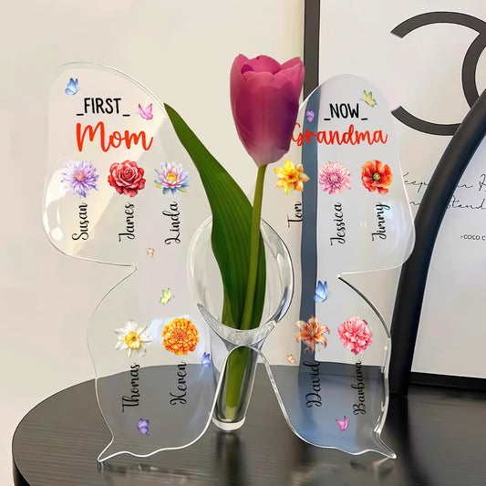 First Mom Now Grandma - Personalized Butterfly Acrylic Vase