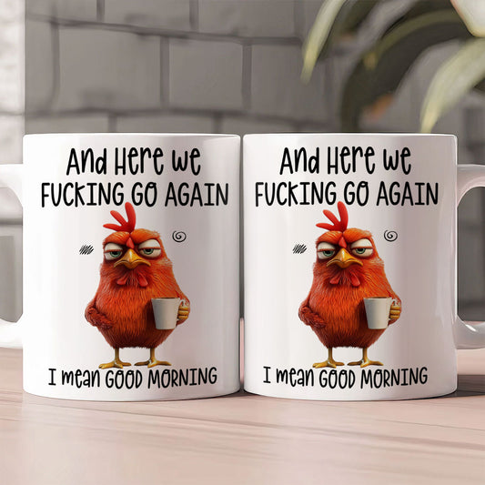Here We F*Cking Go Again I Mean Good Morning - Personalized Ceramic Coffee Mug