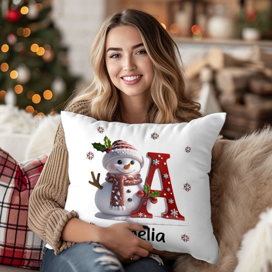 Snowman Merry Christmas - Personalized Crystal Velvet Pillow