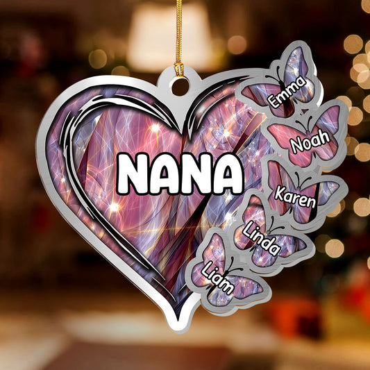 Butterflies Within Heart Grandma Mom - Personalized 1-Layer Acrylic Ornament