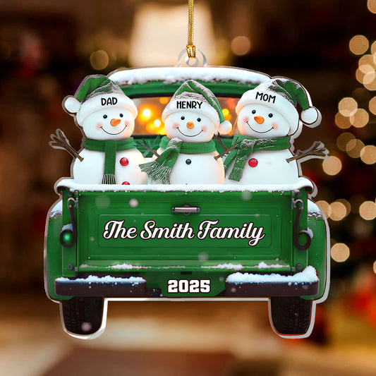 Snowman Family Christmas - Personalized 1-Layer Acrylic Ornament