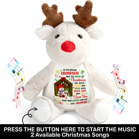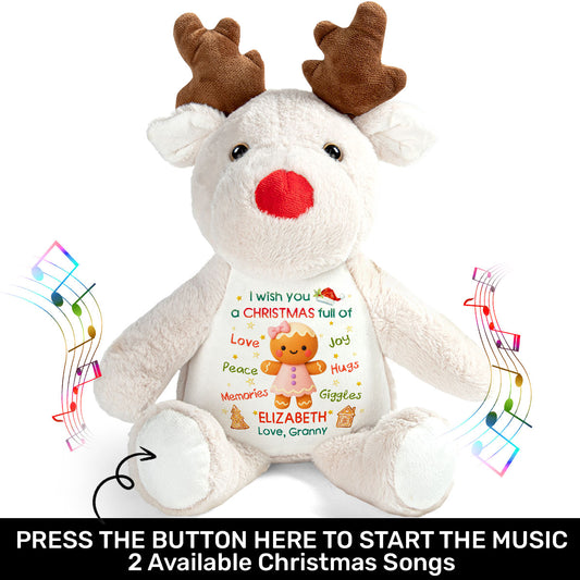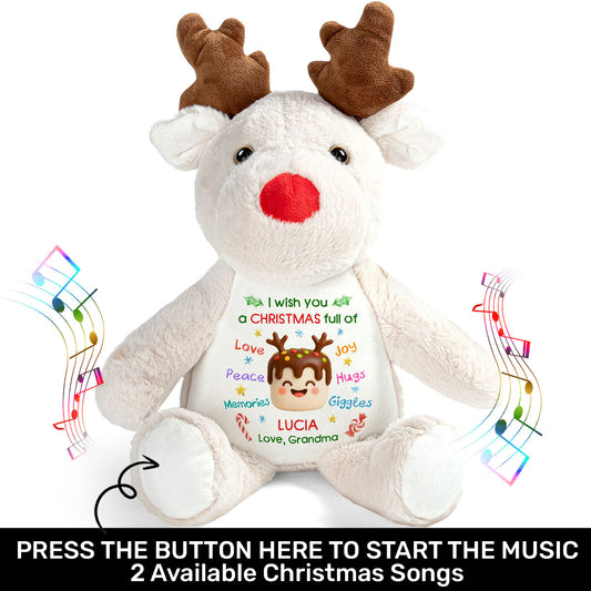 Hearts Filled With Peace, Love And Joy - Personalized Stuffed Reindeer