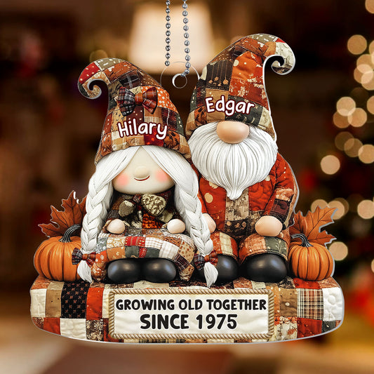 Adorable Patchwork Gnome Pair - Personalized 1-Layer Acrylic Ornament