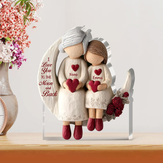 Grandma And Grandchild Moon Love - Personalized Custom Shaped Squared Acrylic Plaque