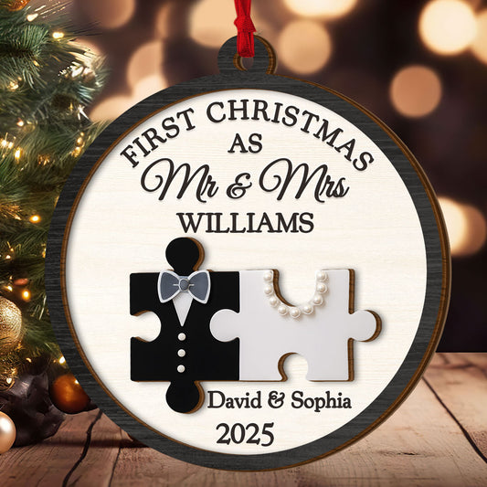 First Christmas As Mr & Mrs Keepsake - Personalized 2-Layered Wooden Ornament