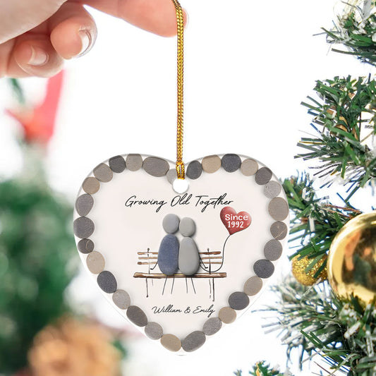 Growing Old Together - Personalized Heart Shaped Ceramic Ornament