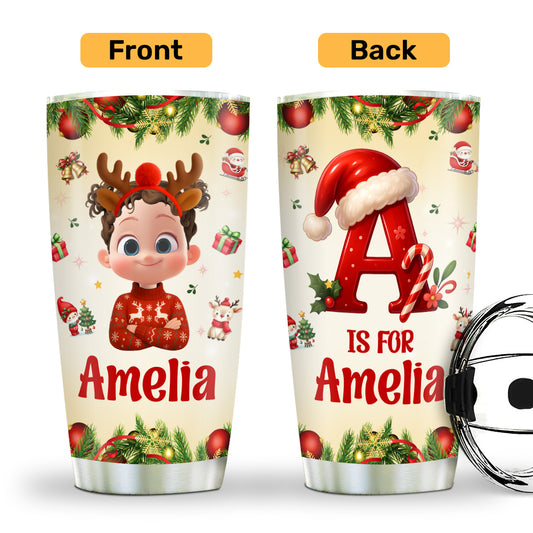 Christmas Festive Kid's Initial Name - Personalized Stainless Steel Tumbler