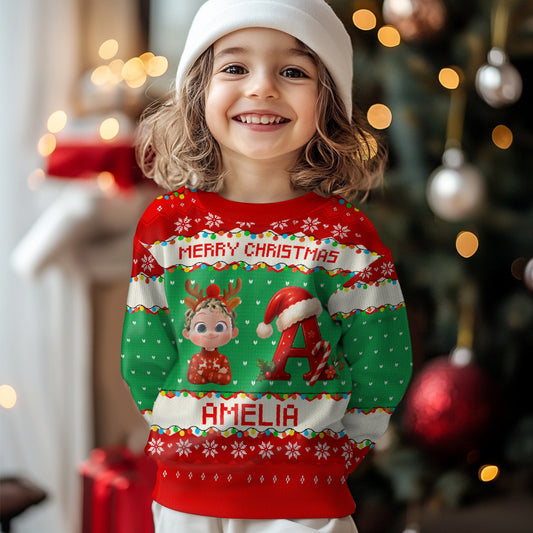 Christmas Joyful Kid's Name - Personalized Kid Wool Sweater