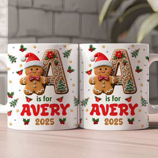 Adorable Gingerbread Alphabets - Personalized Ceramic Coffee Mug