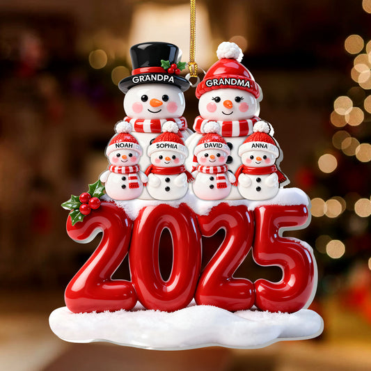 Family Snowman 2025 - Personalized 1-Layer Acrylic Ornament