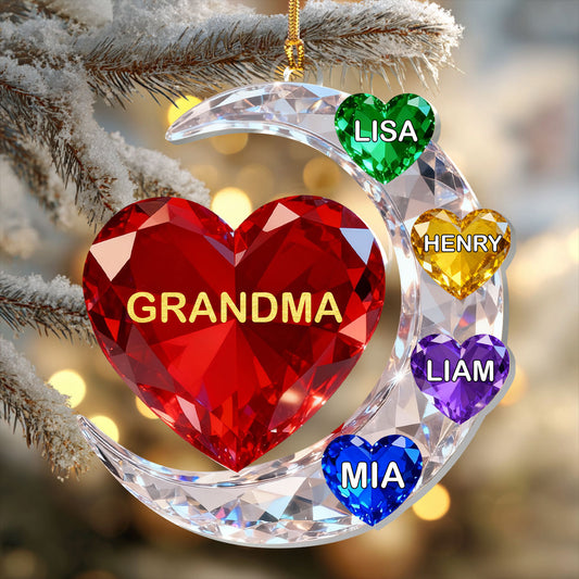 Grandma And Grandchild Crystal Moon Love - Personalized 1-Layer Acrylic Ornament
