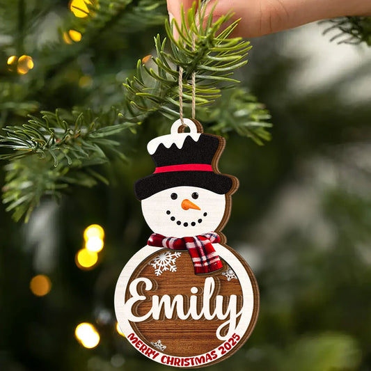 Merry Xmas Snowman - Personalized 2-Layered Wooden Ornament