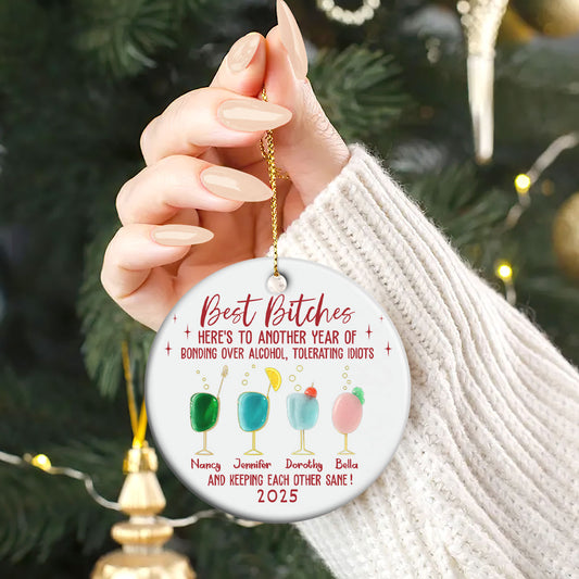 Friends Forever 2 - Personalized Round Shaped Glass Ornament