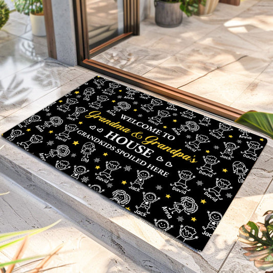 Welcome To Grandpa And Grandma's House Grandkids Spoiled Here - Personalized Doormat