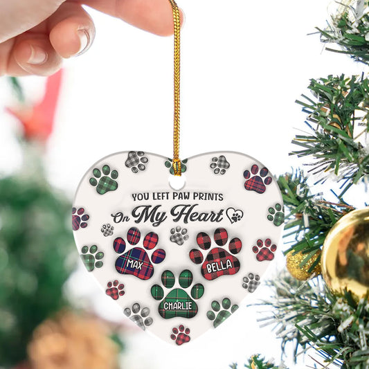 Paw Prints In My Heart - Personalized Heart Shaped Ceramic Ornament