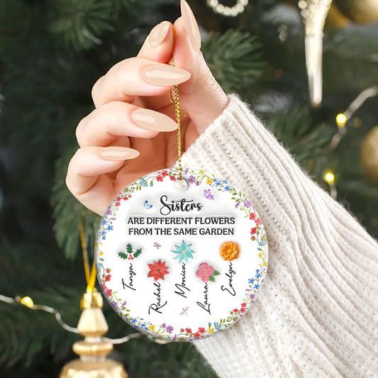 Sisters Are Different Flowers From The Same Garden - Personalized Round Shaped Ceramic Ornament